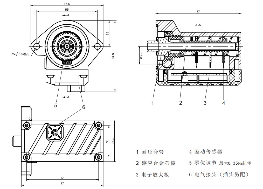 根据差动变压器的原理工作;耐压套管可承受315bar的压力,并能对被压力介质包围的截面进行非接触式位置测量;
